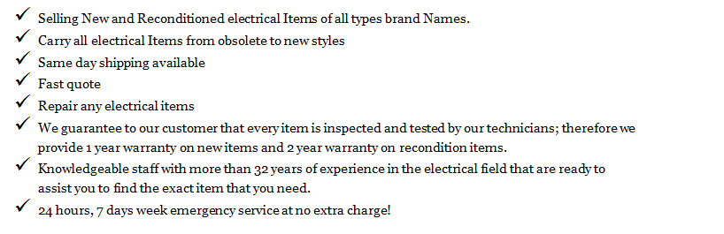 We buy your entire electrical item from Breakers, Fuses, Transformers, Panels, and much more depending on its condition and our inventory.